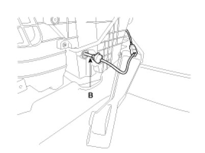 3. Remove the evaporator temperature sensor (B), by pulling it after rotating 90° in a counter clock wise direction.
