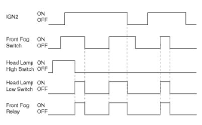 (1) If IGN2 ON, Head Lamp Low Relay ON, Head Lamp High Switch OFF and Front Fog Switch ON, turn Front Fog Relay ON.