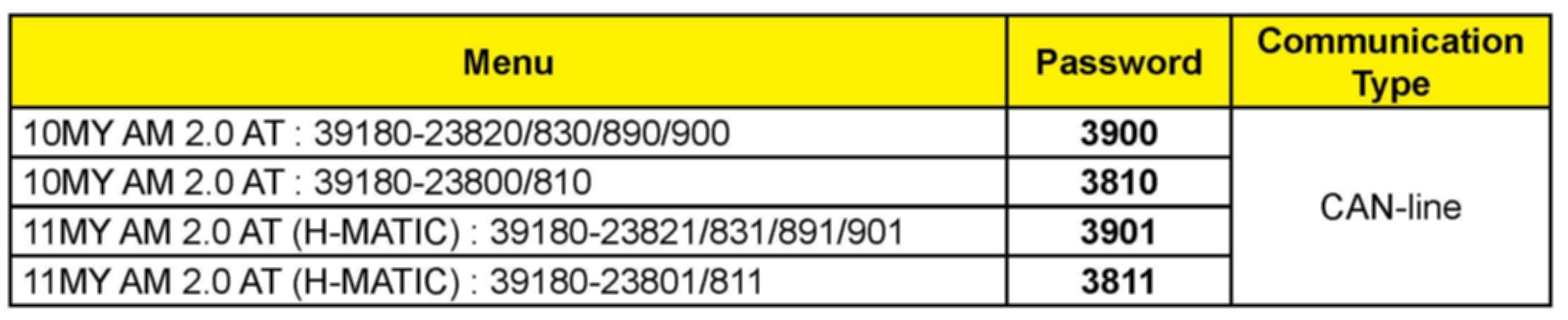MANUAL MODE PCM UPGRADE PASSWORDS: