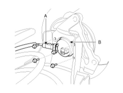 5. Disconnect the wheel speed sensor connector(A) and then remove the hub bearing(B).
