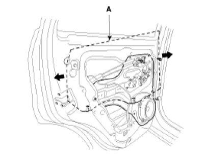 6. Carefully move the glass (A) until you can see the bolts, then loosen them. Separate the glass from the glass run and carefully pull the glass out through the window slot.