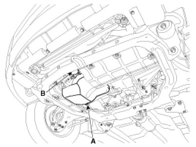 (2) After lifting the car, remove the oil drain plug (A) and drain oil into a container.