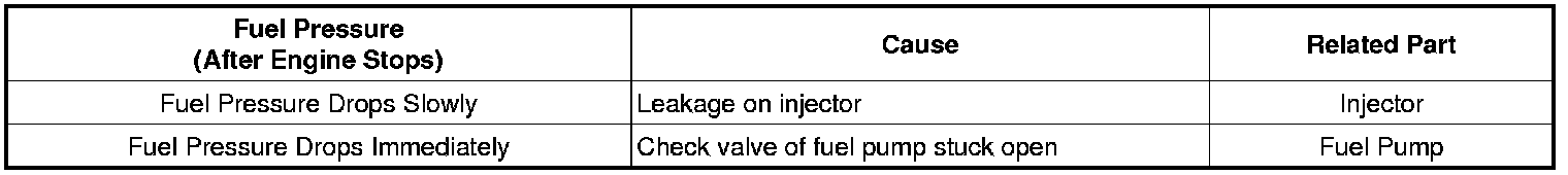 Fuel Pressure:338 - 348 kPa (3.45 - 3.55 kgf/cm2, 49.0 - 50.5 psi)