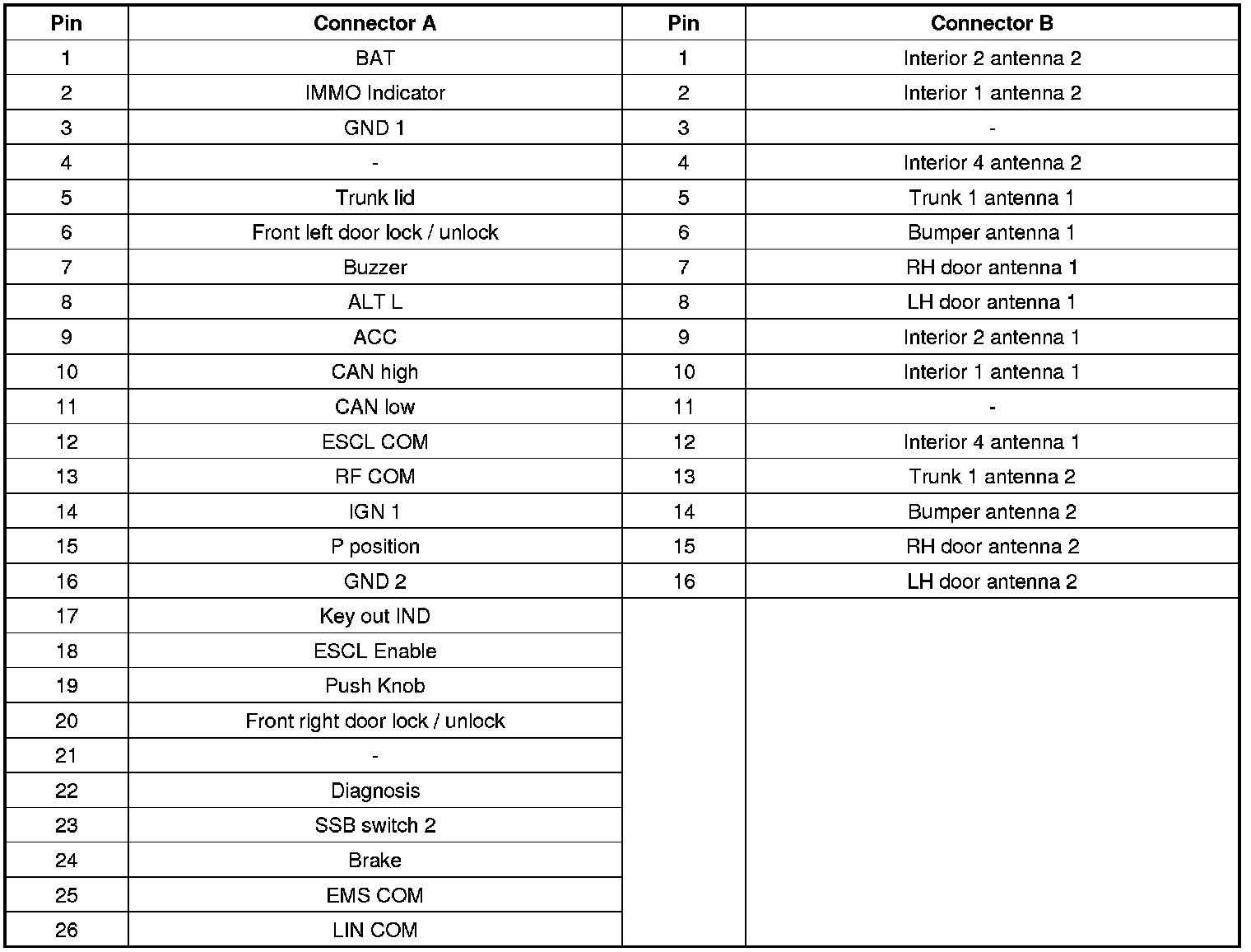 Connector Pin Information