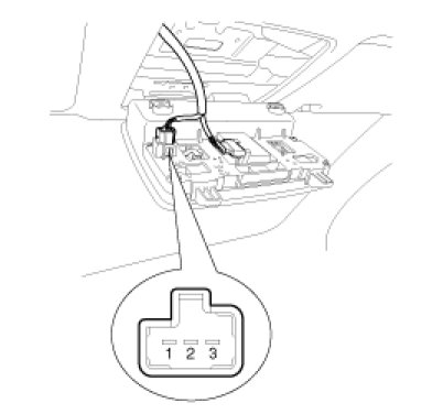 1. Install the overhead console lamp after connecting the sunroof switch and lamp connector.