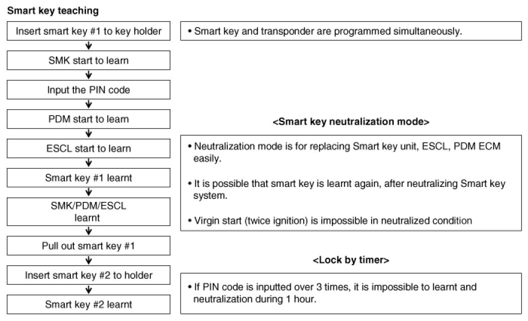 Starting is possible by following process after replacing new smart key unit , PDM, FOB key or ESCL.