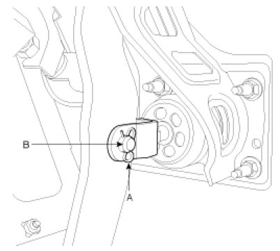 3. Remove the mounting bracket bolt (B).