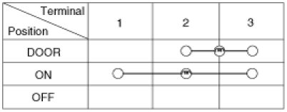 1. Remove the room lamp assembly then check for continuity between terminals.