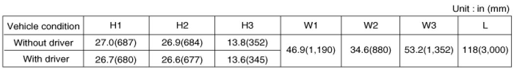 1. Inflate the tires to the specified pressure and remove any loads from the vehicle except the driver, spare tire and tools.