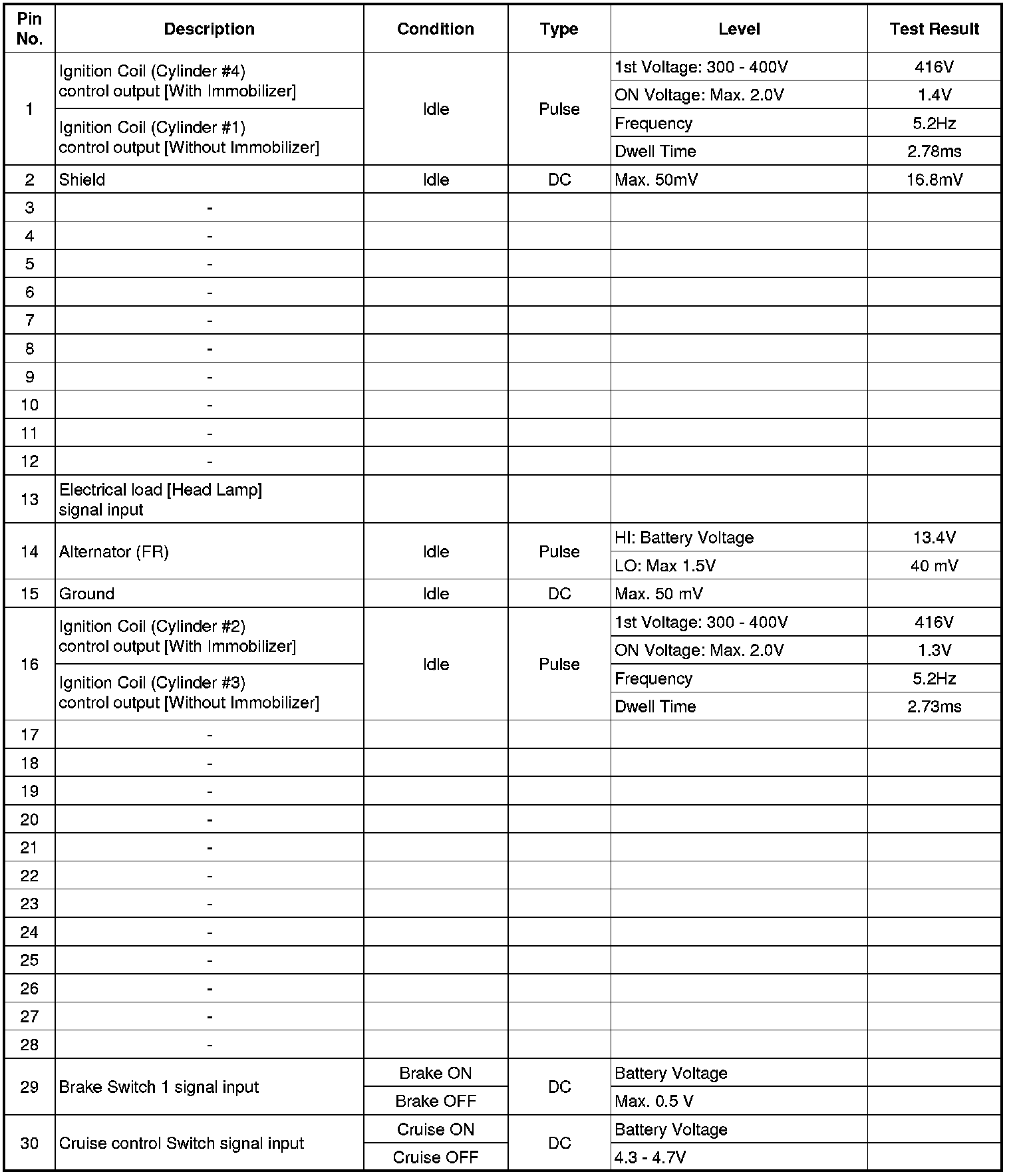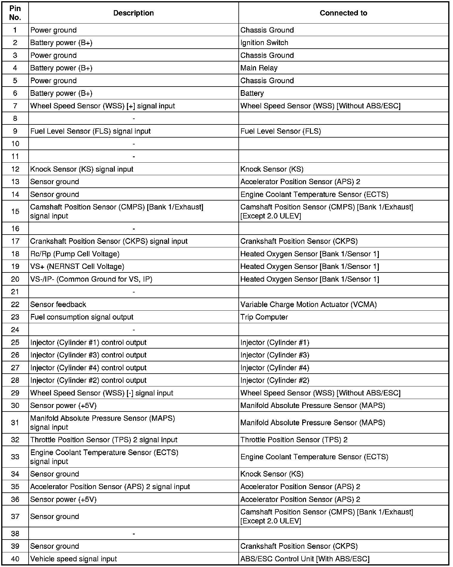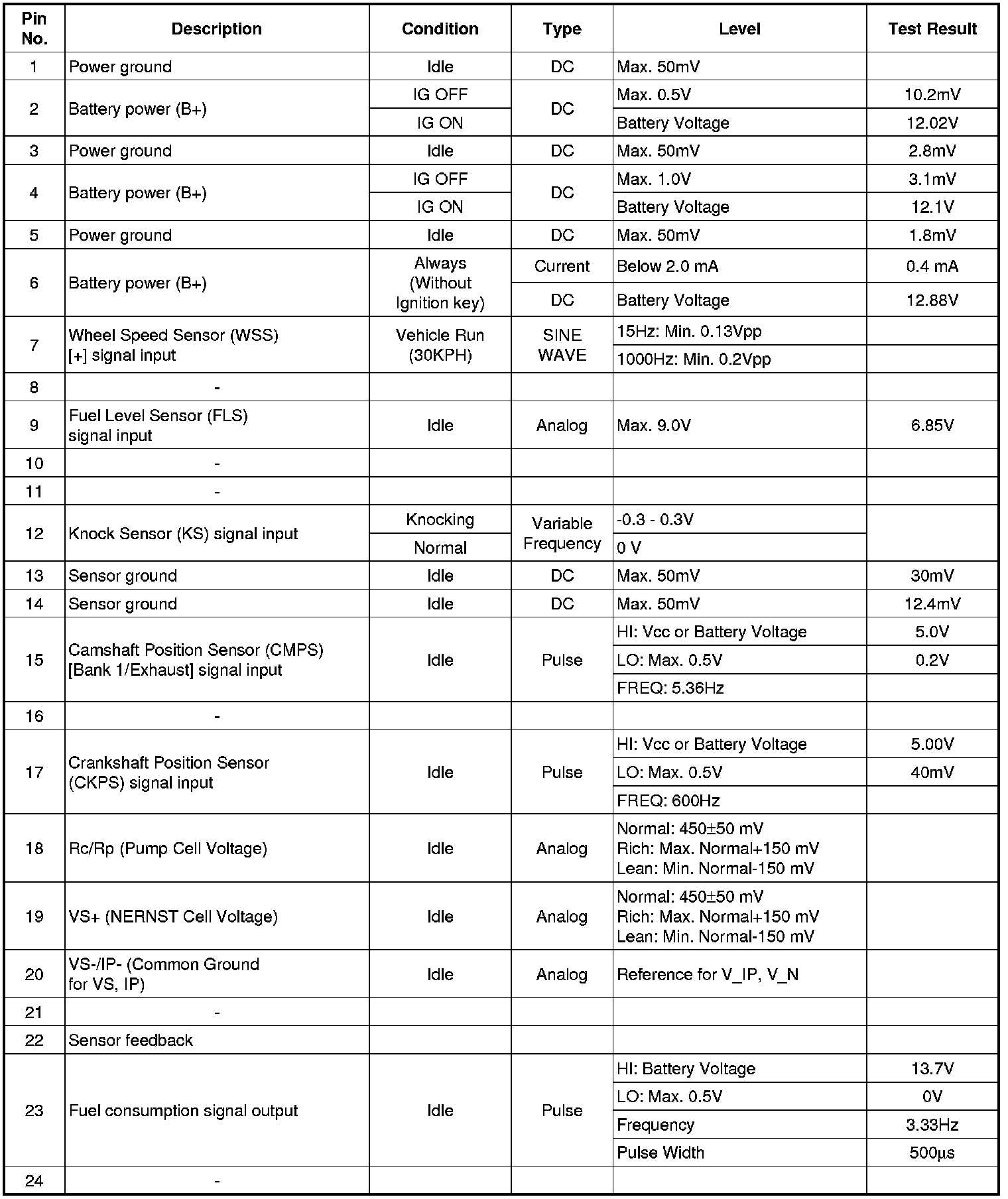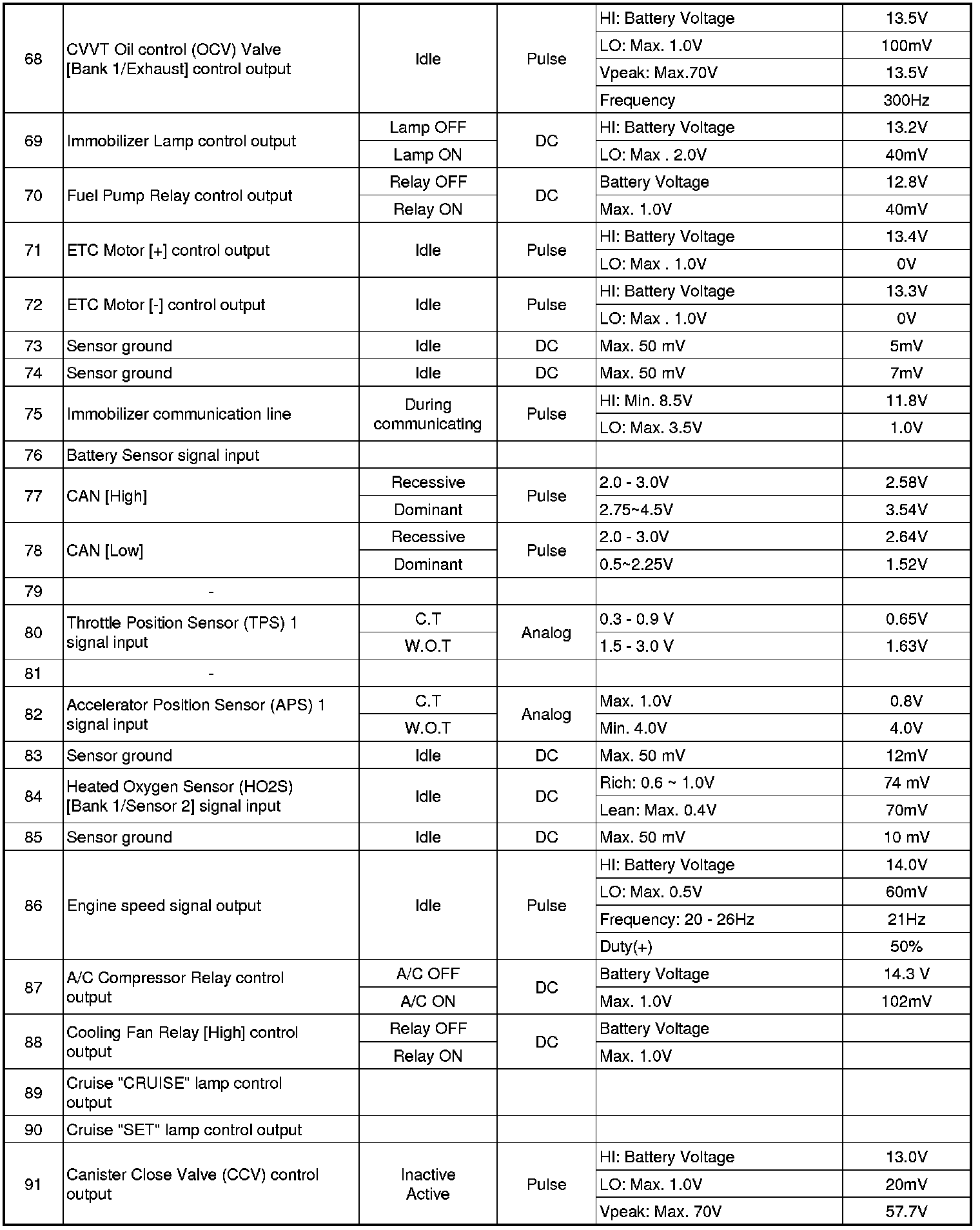 ECM Terminal And Input/Output signal