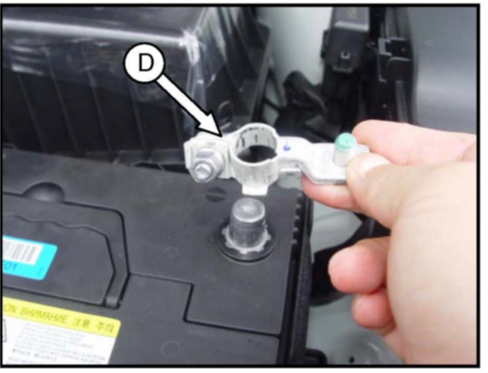 7. Install the new Positive (+) / Negative (-) battery cable terminal in reverse order of removal.