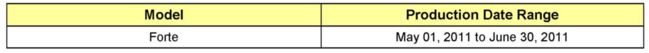 This bulletin provides information relating to the Positive (+) and Negative (-) battery cable terminal replacement on Forte vehicles produced from May 01, 2011 to June 30, 2011. Kia is requesting the completion of this Service Action on all affected 2011/12MY Forte (TD) vehicles prior to delivery. Before conducting the procedure, verify that the vehicle is included in the list of the affected VINs.