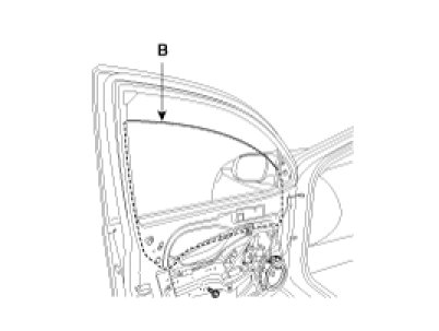 4. Carefully adjust the glass (B) until you can see the bolts, then loosen them. Separate the glass from the glass run and carefully pull the glass out through the window slot.