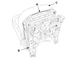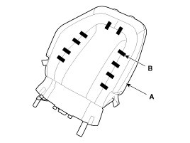 10. After removing the hog-ring clips (B) on the front of seat back and remove the seat back cover (A).