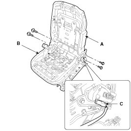4. After loosening the mounting bolts, then disconnect the seat back frame (A) and seat cushion frame (B).