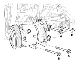 1. Make sure of the length of compressor mounting bolts, and then tighten it A->B->C->D order.