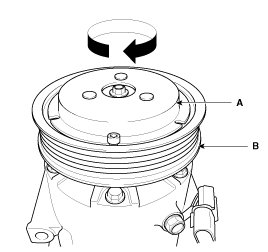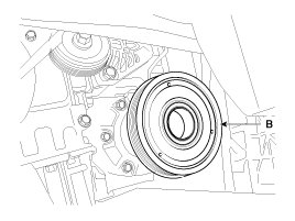 2. Check the pulley (B) bearing play and drag by rotating the pulley by hand. Replace the clutch set with a new one if it is noisy or has excessive play/drag.