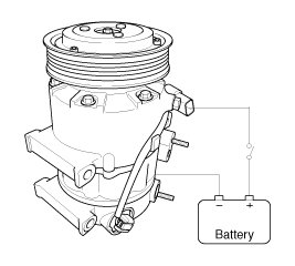 Connect the compressor side terminals to the battery (+) terminal and the ground battery (-) terminal to the compressor body.