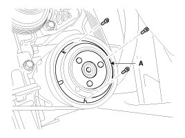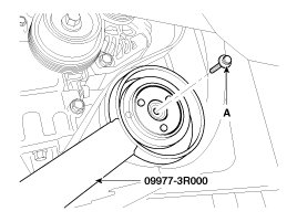 8. Disconnect the retainer ring (A) and then remove the pulley(B).