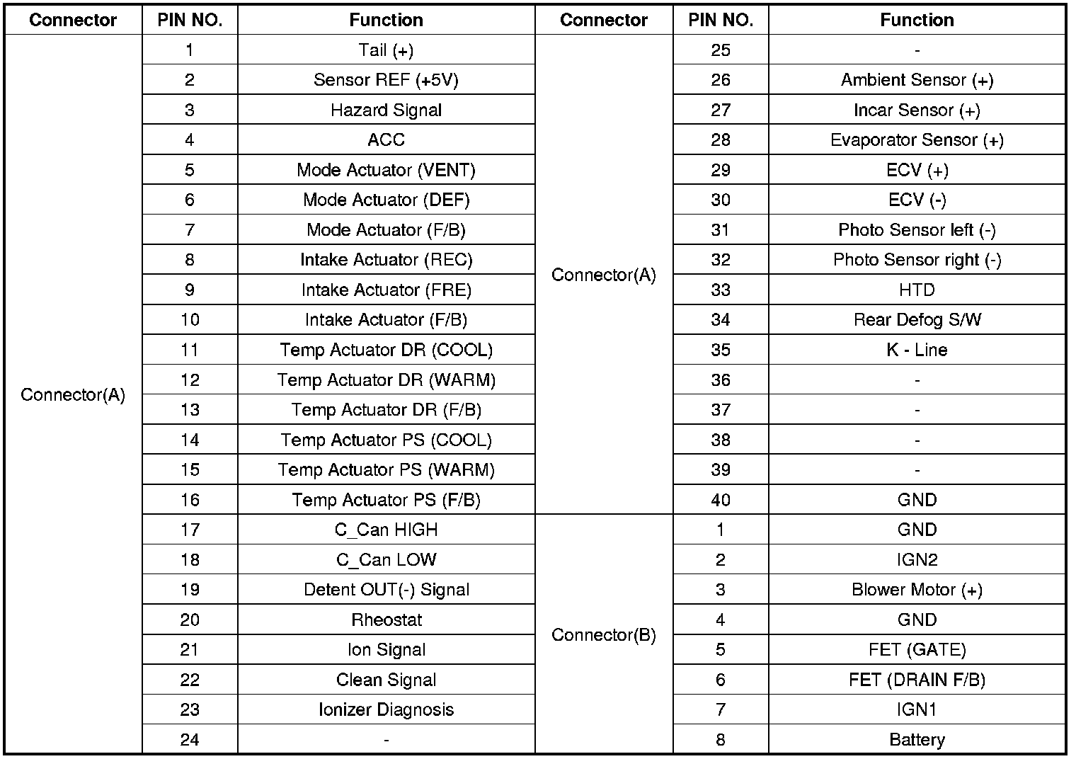 Connector pin function
