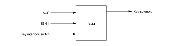 1. Key solenoid to the output of the ON KEY to make the subject does not fall. (If IGN1 ON or ACC subject to the key Interlock switch input is OFF.)