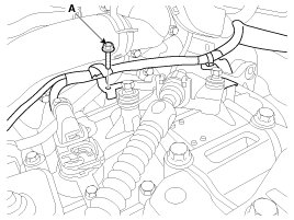 8. Remove the automatic transaxle upper mounting bolt (A-2ea) and the starter motor mounting bolt (B-2ea).