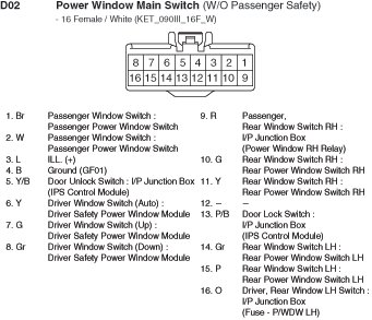 D02 Power Window Main Switch (W/O Passenger Safety):