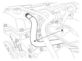 8. Disconnect the PCV (Positive crankcase ventilation) hose (A).