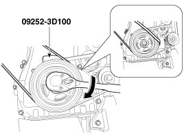 (1) Put the SST (09252-3D100) between the crankshaft pulley and the drive belt.