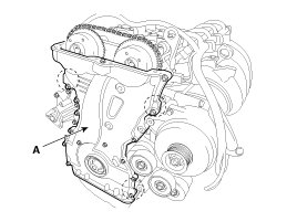 23. Remove the timing chain cover (A) by gently prying the portions between the cylinder head and cylinder block.