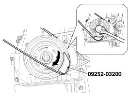 (2) Rotate the crankshaft pulley clockwise. Then the drive belt is removed.