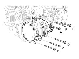 1. Make sure of the length of compressor mounting bolts, and then tighten it A->B->C->D->E->F order.