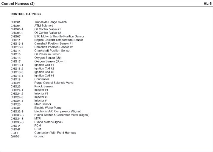 Control Harness Index: