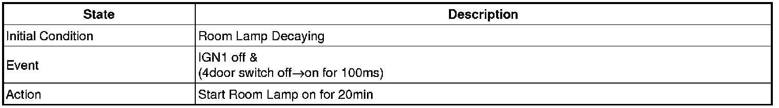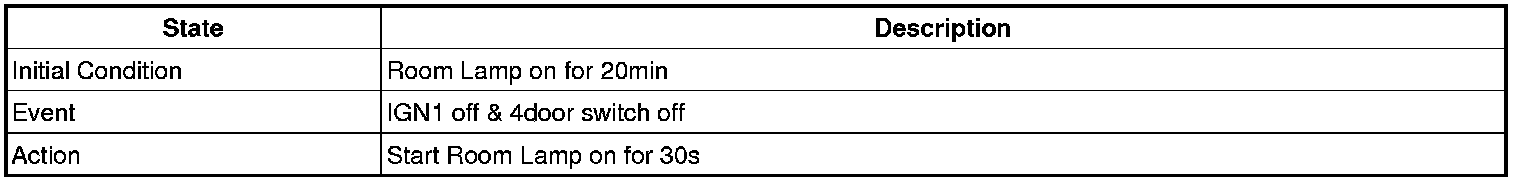 - 4 Door in closed IGN1 off & (Key in -> Key out): 30-second delay will be lights out.