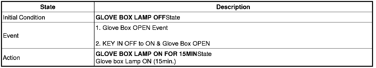 1. If GLOVE BOX is OPEN, LAMP is turned ON for 15min.