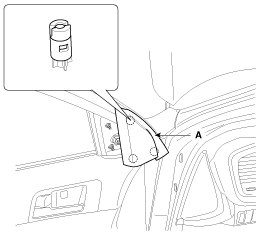 2. Disconnect the outside rear view mirror connector (A).