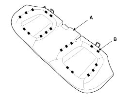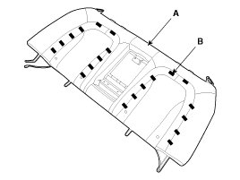 3. Disconnect the hog-ring clips (B) on the rear of seat cushion, remove the seat cushion cover (A).