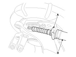4. Install the holding clip (B) and the cable adjusting nut(A) after fixing the parking brake cable.
