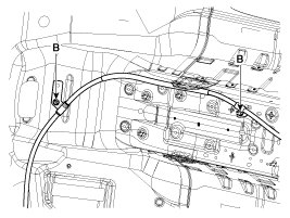 2. Install the parking brake cable (B) and then cable retainer (A).