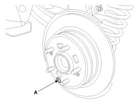 5. Loosen the hub assembly mounting bolts (A), and then remove the hub assembly and parking brake assembly.