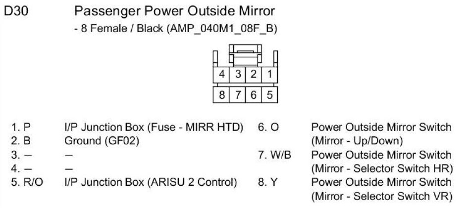 D30 Passenger Power Outside Mirror: