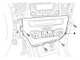 9. Loosen the mounting screws and then remove the blower & A/C controller (A).