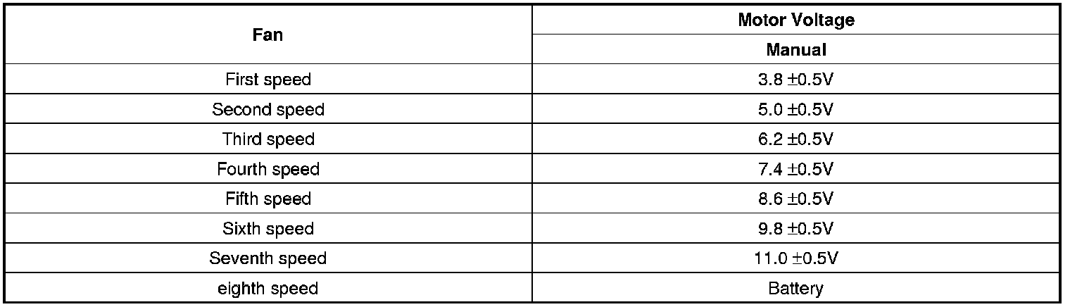 2. Manually operate the control switch and measure the voltage of blower motor.