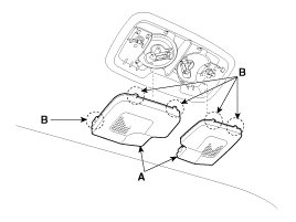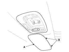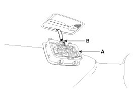4. Remove the room lamp assembly (A) after disconnecting the connector (B).