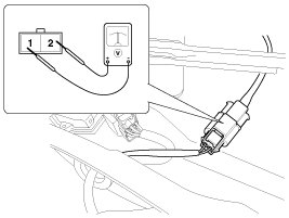 4. Turn the ignition switch ON and the windshield deicer switch ON, then measure the voltage between the terminals of harness side deicer connector.