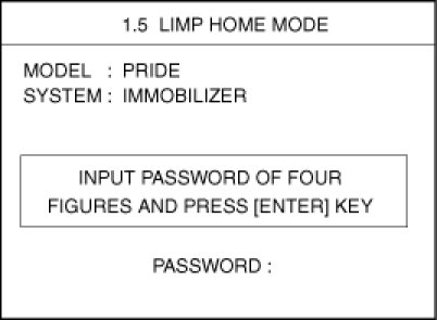 If the PCM(ECM) detects the fault of the SMARTRA or transponder, the PCM(ECM) will allow limp home function of the immobilizer. Limp home is only possible if the user password (4 digits) has been given to the PCM(ECM) before. This password can be selected by the vehicle owner and is programmed at the service station.