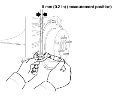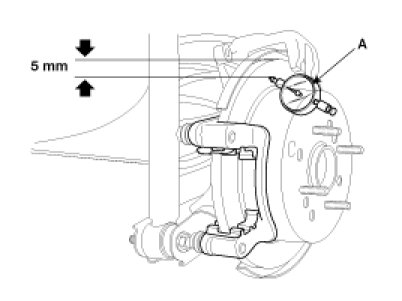 1. Place a dial gauge(A) about 5mm (0.2 in) from the outer circumference of the brake disc, and measure the run out of the disc.