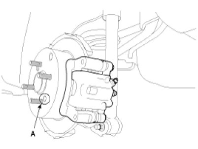 1. Remove the brake disc from hub using M8 screw(A) if the brake disc has been seized with the hub due to corrosion or overheat.