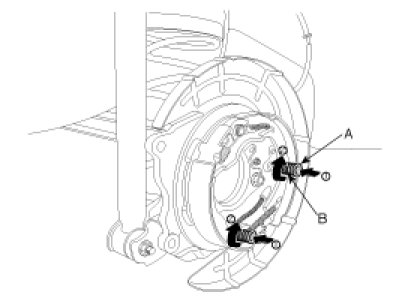For Drum Brake type, shoe clearance is automatically adjusted by the adjuster and the adjusting lever.