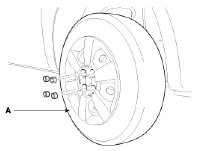 2. Remove the front right tire(A) from front hub.